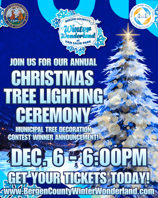 Bergen County Executive Jim Tedesco, members of the Bergen County Board of Commissioners, and the Bergen County Parks Department invite the media and general public to attend the annual Bergen County Winter Wonderland Christmas Tree Lighting ceremony at 6:00 PM ribbon cutting ceremony on Saturday, December 6th at Van Saun County Park.