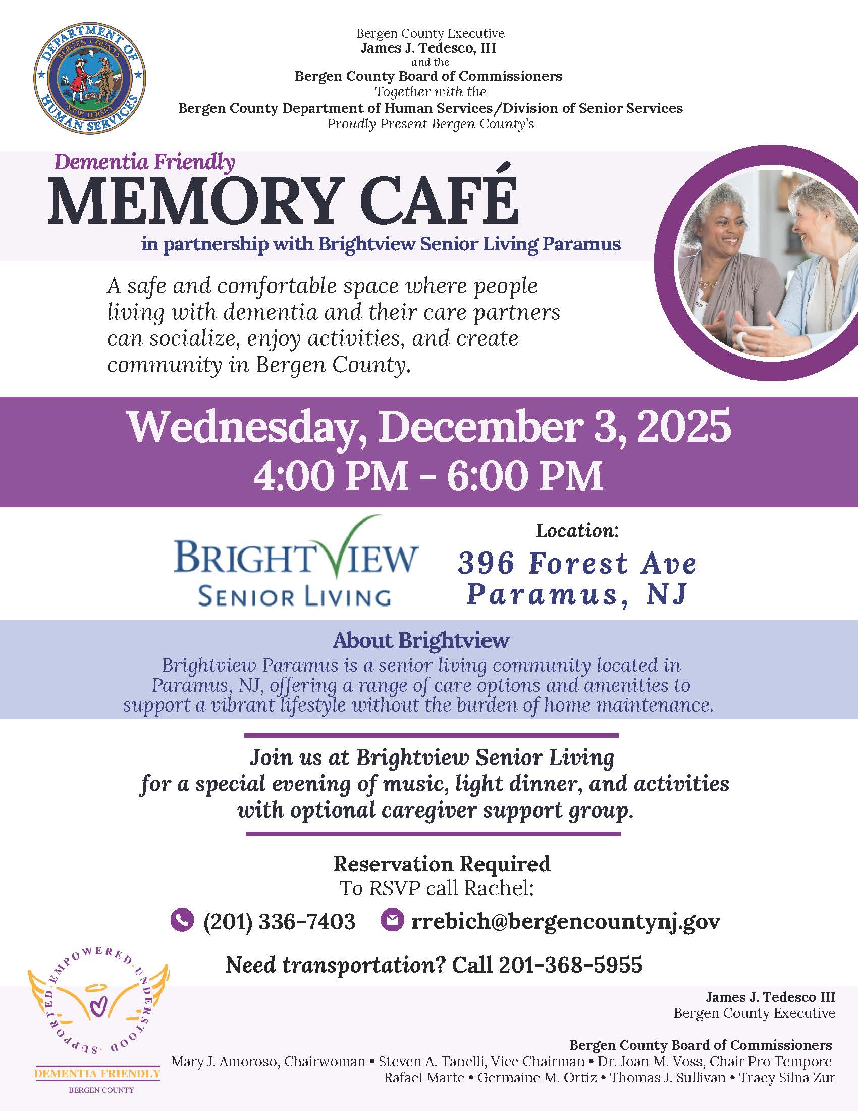A safe and comfortable space where people living with dementia and their care partners can socialize, enjoy activities, and create community in Bergen County.
