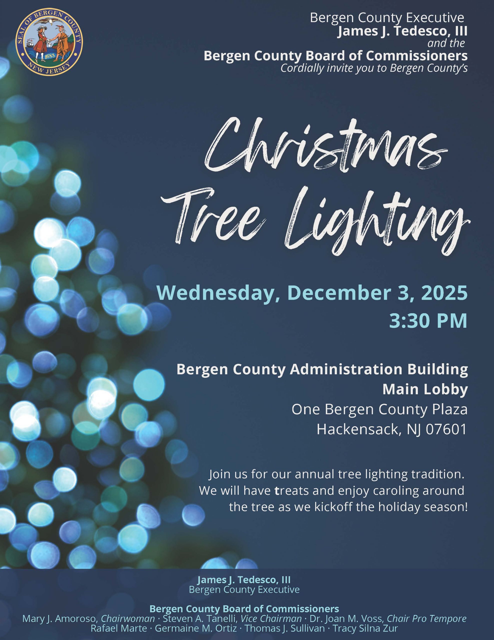 Christmas Tree Lighting Christmas Tree Lighting Date Dec 03 - 29 2025 Time 3:30 pm - 5:00 pm Location One Bergen County Plaza Share this event