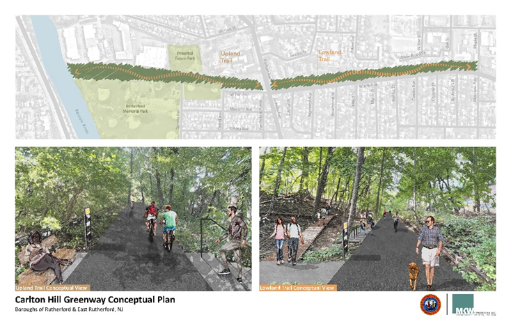 The Carlton Hill Greenway project began in November 2022, when Bergen County partnered with the Open Space Institute (OSI) to acquire a 1.2-mile stretch of former Norfolk Southern Railway property linking Rutherford and East Rutherford. The $1.9 million acquisition was funded by Bergen County and NJDEP Green Acres funding.