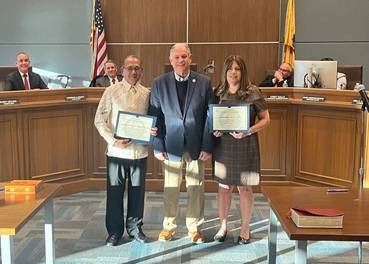 Above: Bergenfield Councilman Buddy Deauna and Councilwoman Ora Kornbluth being presented certificates of commendation from County Executive Tedesco