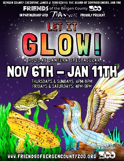 Starting on Thursday, November 6, at 4 p.m., Let it GLOW! A Holiday Lantern Spectacular will return to the Bergen County Zoo. Sponsored by the Friends of the Bergen County Zoo, and in partnership with Tianyu Arts & Culture, Inc., this enchanting display features over 30 hand-painted, larger-than-life Chinese lanterns with a modern twist—celebrating culture, animals, and holiday warmth. Guests can also enjoy cozy fire pits throughout the Zoo, as well as s’mores kits available for purchase in the Zoo Gift Shop.